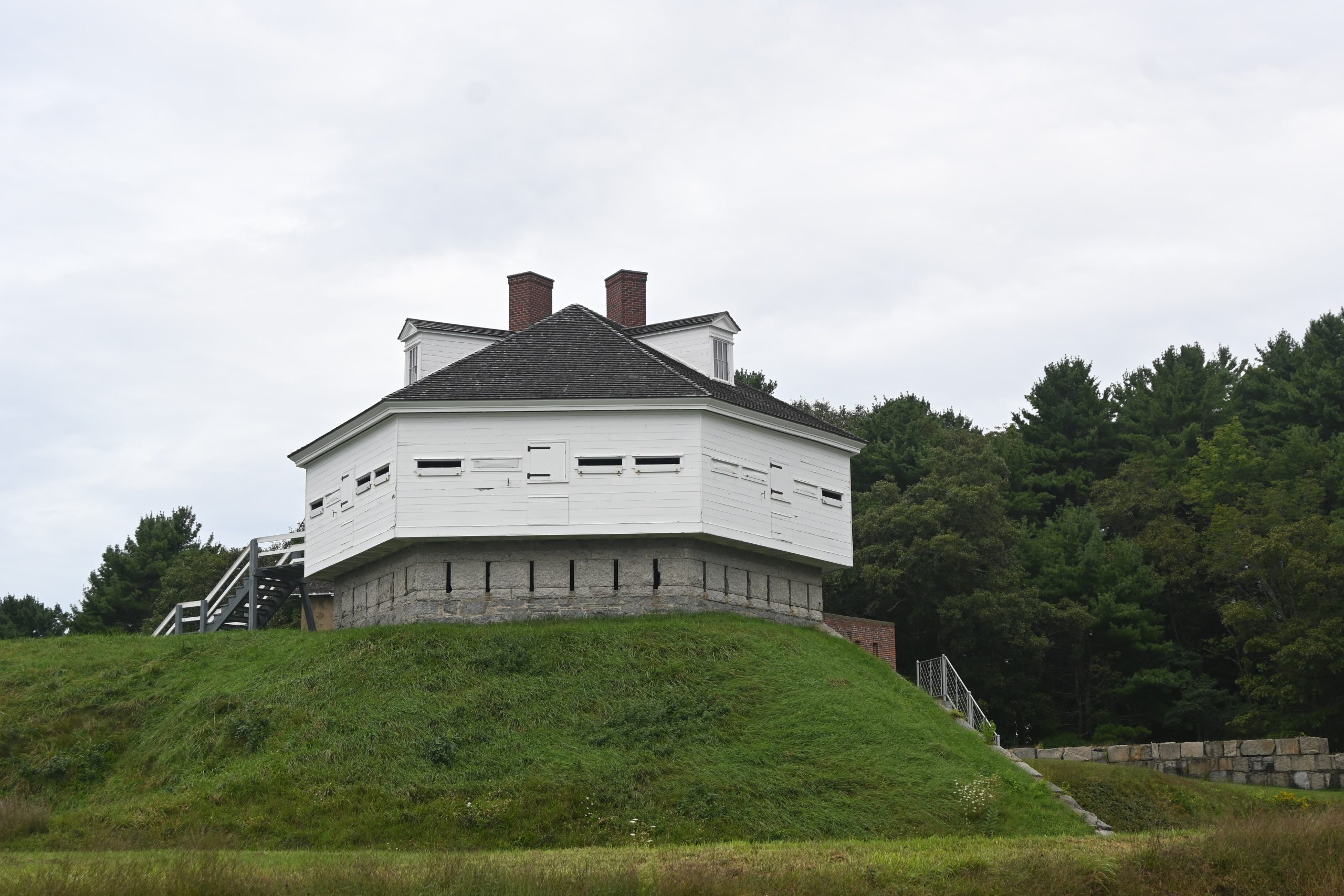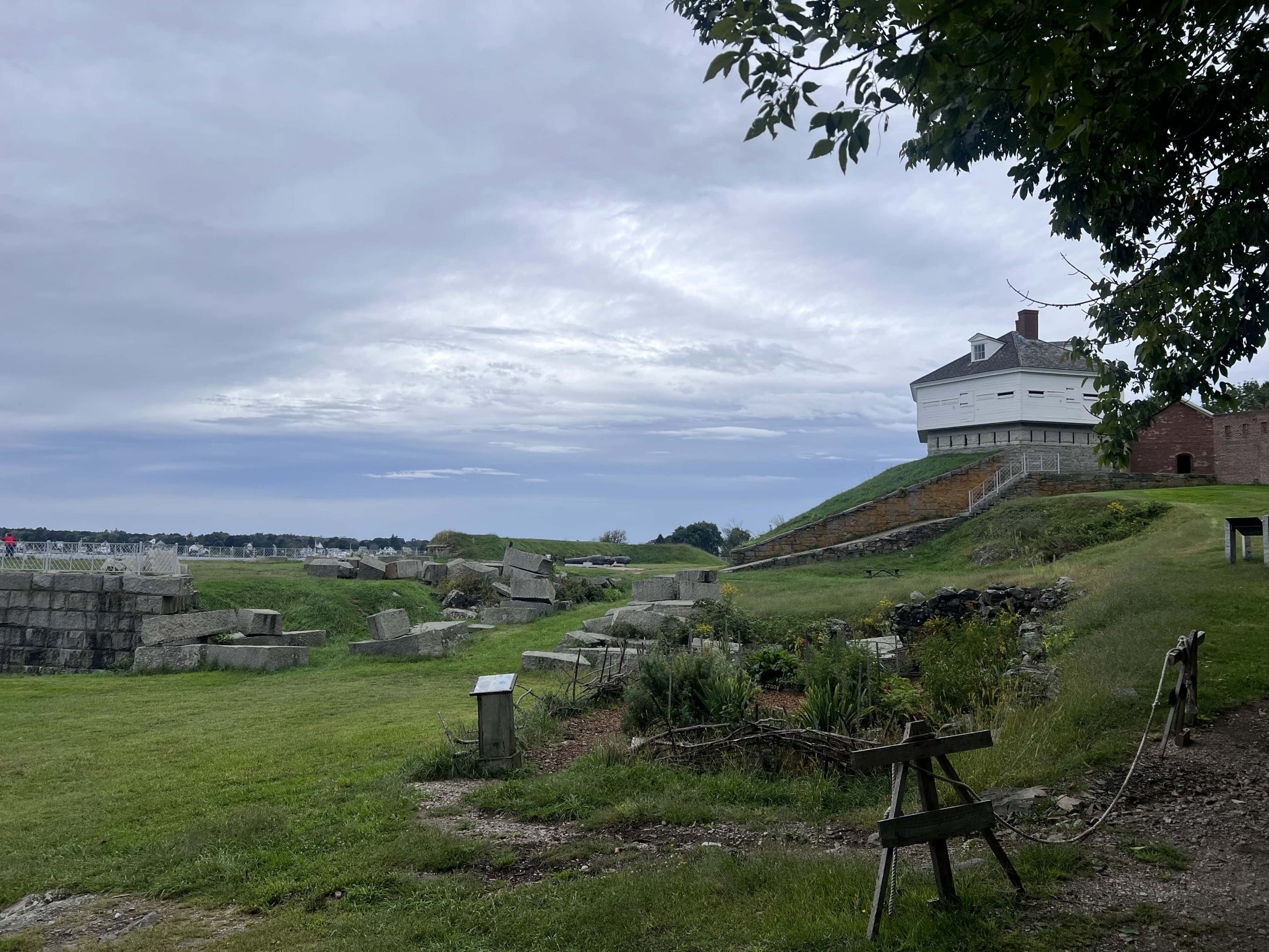 Dopo Portsmouth, entriamo in Maine, a Kittery, dove prima di fiondarci nella meta principale della cittadina (gli outlet!) scoviamo un piccolo parco statale (ingresso 4$ da mettere nella cassettina all’ingresso): Fort McClary State Historic Site, un sito colonizzato già dagli anni ’20 del Seicento e poi usato nei secoli successivi anche come fortificazione militare. Ci fermiamo ad ammirare il mare, un po’ più grosso del solito visto l’uragano (che sarebbe meglio chiamare “ex tempesta tropicale di categoria 1” perché quello è, ad oggi).