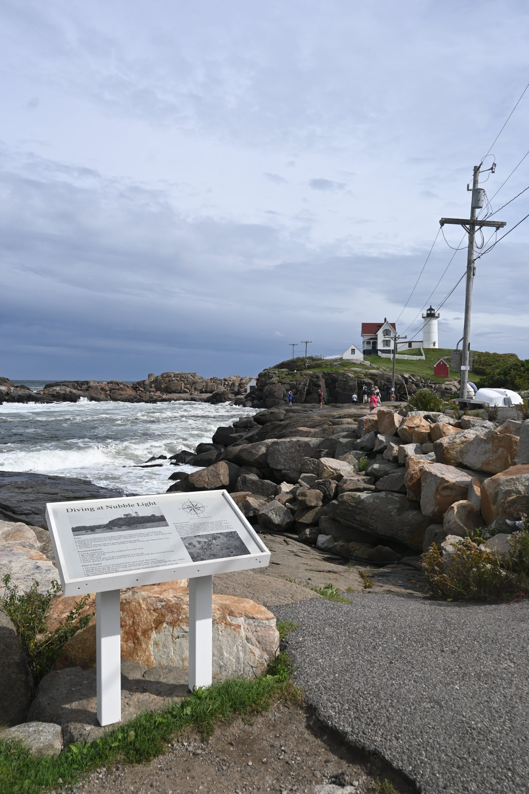 Arriviamo all’ingresso del Portland Head Light, il faro più famoso di tutto il Maine… ed è CHIUSO. Sprangato. Non si può proprio entrare nel parco, neanche avvicinarsi… perché oggi hanno deciso di tenere chiuso VISTO L’ARRIVO DELL’URAGANO. GRRRRRRRRR