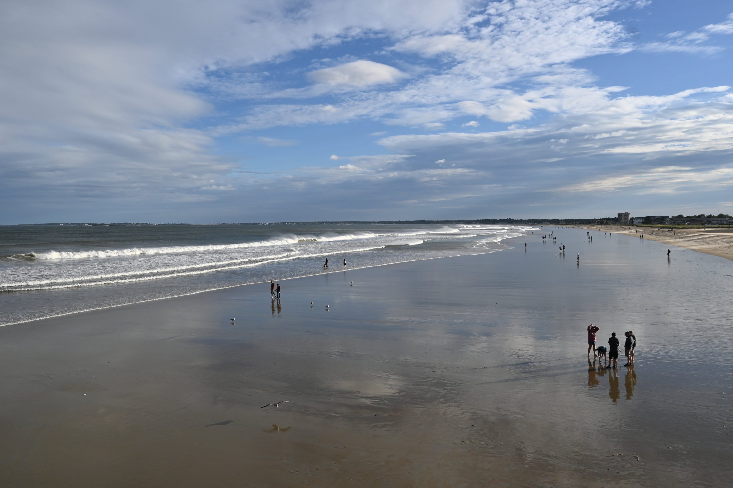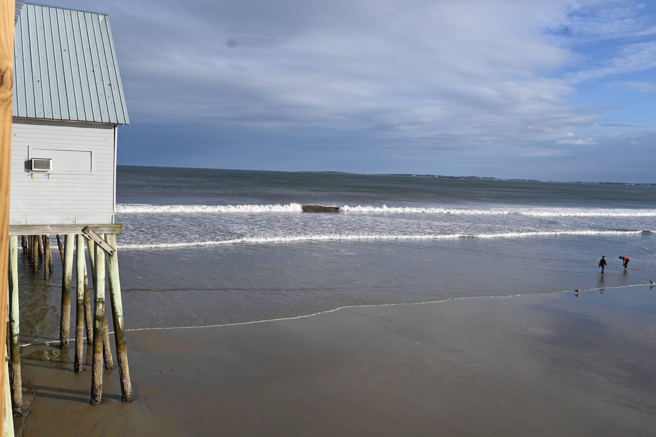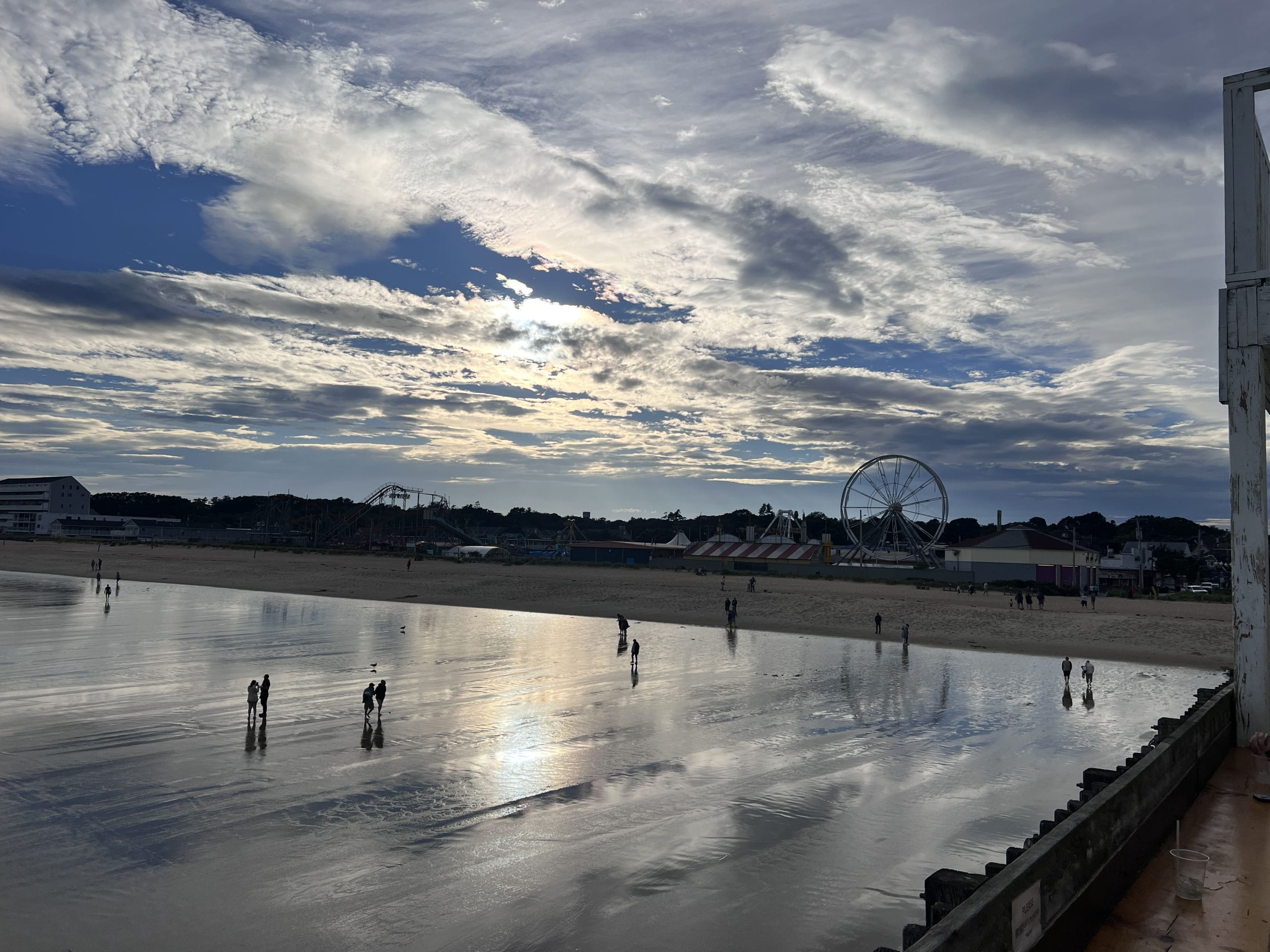 Dopo Perkins Cove, è il turno del piccolo Lobster Point Lighthouse, posto lungo la camminata “Marginal Way” che da Perkins Cove porta ad Ogunquit, e poi nell’ordine Kennebunkport e Old Orchard Beach, che ci ricorda un sacco Santa Monica anche se, per questo simpatico uragano e per il vento, è tutto chiuso (soprattutto il luna park vicino al molo è chiuso, sarebbe stato bello vederlo aperto e illuminato e con le giostre in funzione). Percorriamo il molo con i localini e i negozietti fino in cima, da dove la visuale sulla larghissima spiaggia di Old Orchard Beach è perfetta, con la gente che cammina sul bagnasciuga e il sole che sta calando. Facciamo anche merenda con una slice di pizza da Rocco’s Pizza (niente a che vedere con quella di Joe’s Pizza di ieri) e poi proseguiamo per l’ultima tappa di giornata, il Portland Head Light, con una breve sosta intermedia ai due fari gemelli di Two Lights (qui sulla scogliera, con le raffiche di vento, diamo a tutti una dimostrazione pratica di cosa vuol dire essere triestini ed essere cresciuti camminando contro bora :-)))).