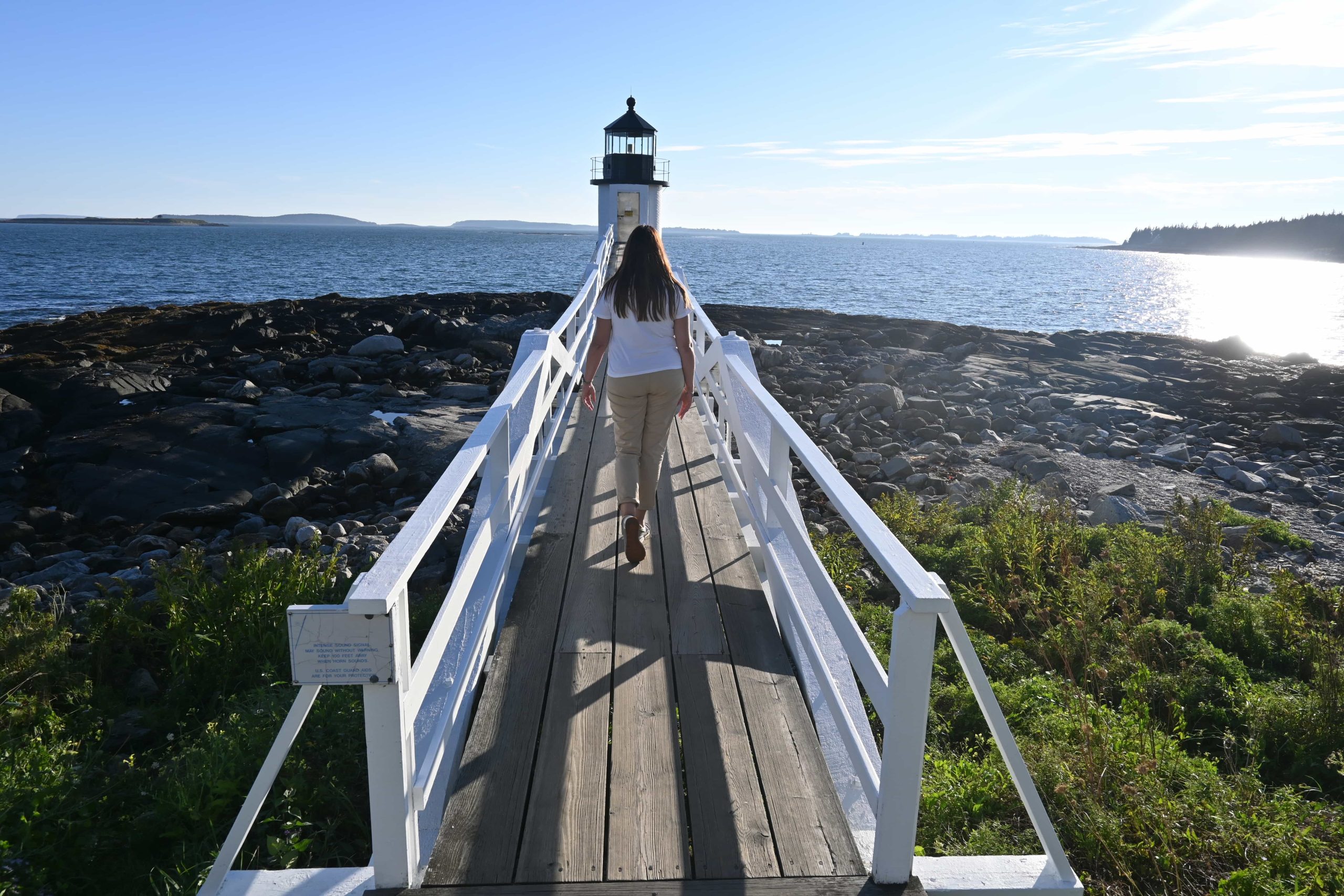 Sono già le 16 ma nonostante la strada verso Bar Harbor, dove staremo due notti per visitare il parco nazionale di Acadia, sia lunghetta, abbiamo ancora dei fari da scovare 🙂 Il primo, tappa imperdibile per me, il Marshall Point Lighthouse, ossia il faro di Forrest Gump (vi ricordate quando, dopo aver corso letteralmente attraverso tutta l’America, arriva nel punto più a est – in Maine, appunto – e giunto sulla passerella di legno che porta al faro, si gira e ricomincia a correre nella direzione opposta? La sua corsa poi terminerà sulla strada che porta alla Monument Valley, in un punto da allora noto come “Forrest Gump Point”).