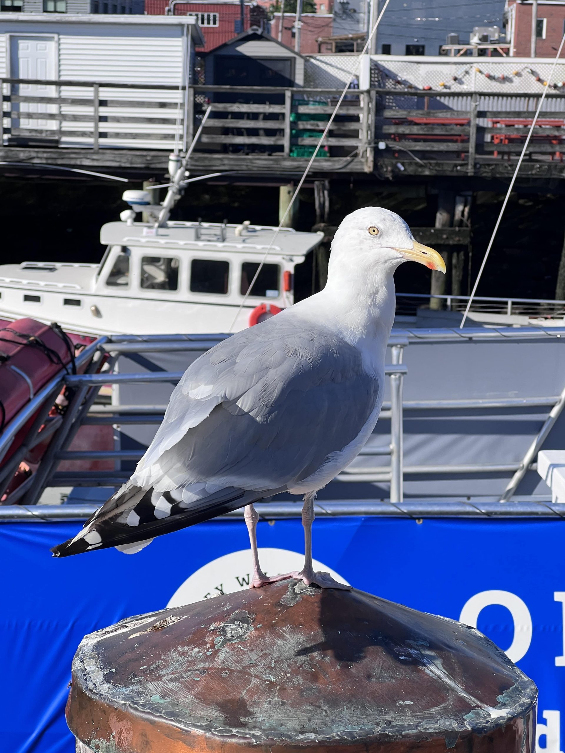 Stamattina splende un fantastico sole dopo la (mancata) tempesta, ed è tornato anche il caldo; facciamo colazione nel nostro Days Inn in anticipo rispetto al solito, perché vogliamo a tutti i costi visitare il Portland Head Light che iera era chiuso e questo significa, invece di proseguire verso nord per Acadia, tornare verso sud sui nostri passi di un’oretta. Il Portland Head Light ha anche un museo che apre alle 10, così, nonostante la partenza presto dall’hotel, per non arrivare troppo in anticipo al faro decidiamo di fermarci a fare due passi a Portland, che ieri sera avevamo saltato per mancanza di tempo. È domenica mattina, sono le 9 scarse, e la città (la più grande del Maine, con 60000 abitanti, e principale porto del New England) sonnecchia ancora. Il parcheggio su Commercial Street, la strada principale che costeggia il porto, la domenica è gratuito, troviamo subito posto (vantaggio di viaggiare in settembre, l’abbiamo già visto nei vari villaggi e cittadine in cui ci siamo fermati) e, dopo aver preso un Pumpkin Spice Latte e quell’altra cosa a base di mele e cannella che piace ad Ale da Starbucks, ci incamminiamo lungo il porto. Davvero bella questa Portland, con tutti i palazzi in mattoni rossi che si affacciano sui moli, i tanti locali e negozietti (ancora chiusi a quest’ora) e tutte le escursioni in barca che si possono fare per le numerose isole della baia.