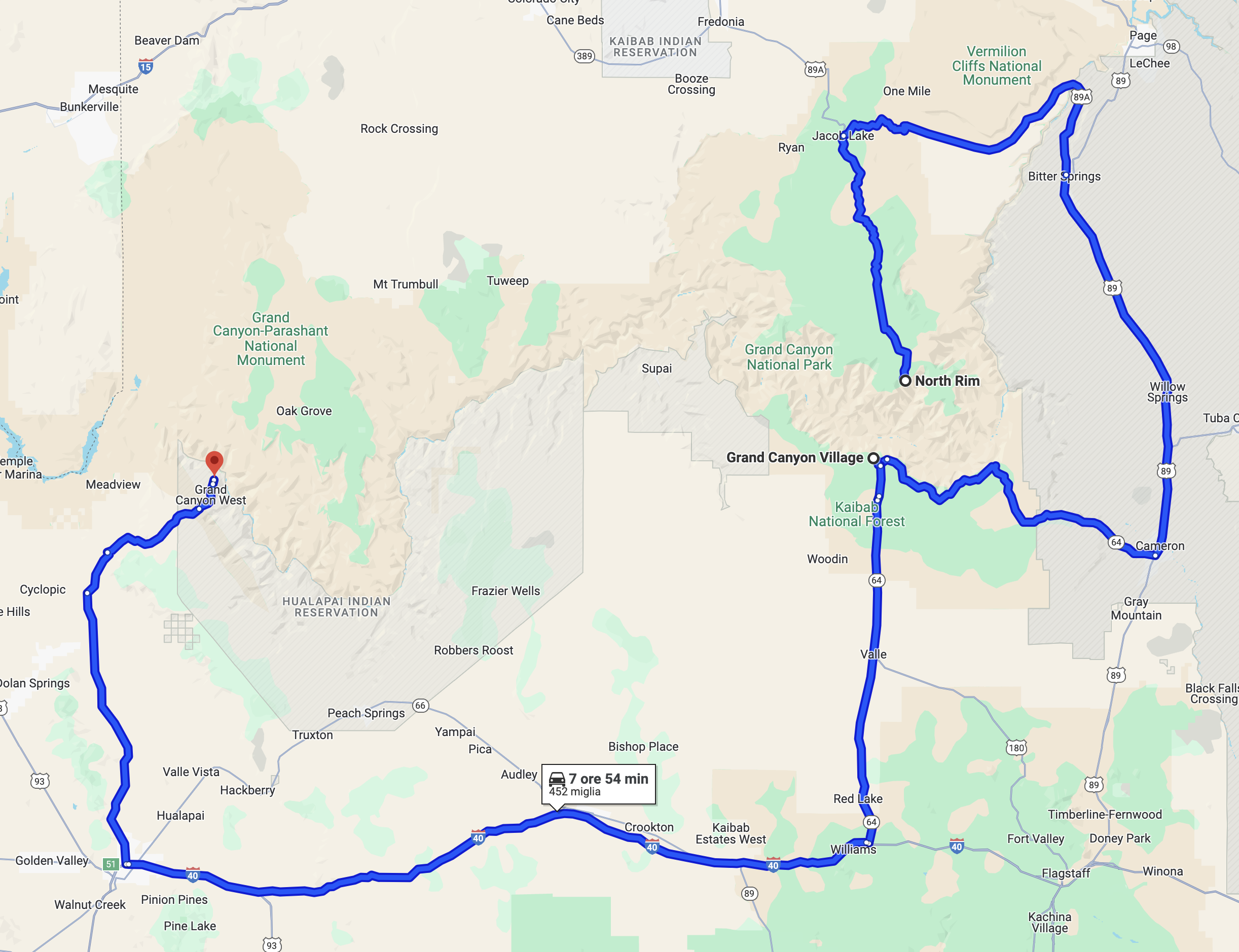 - la parte del trattino a ovest del Grand Canyon Village è la Hermit Road