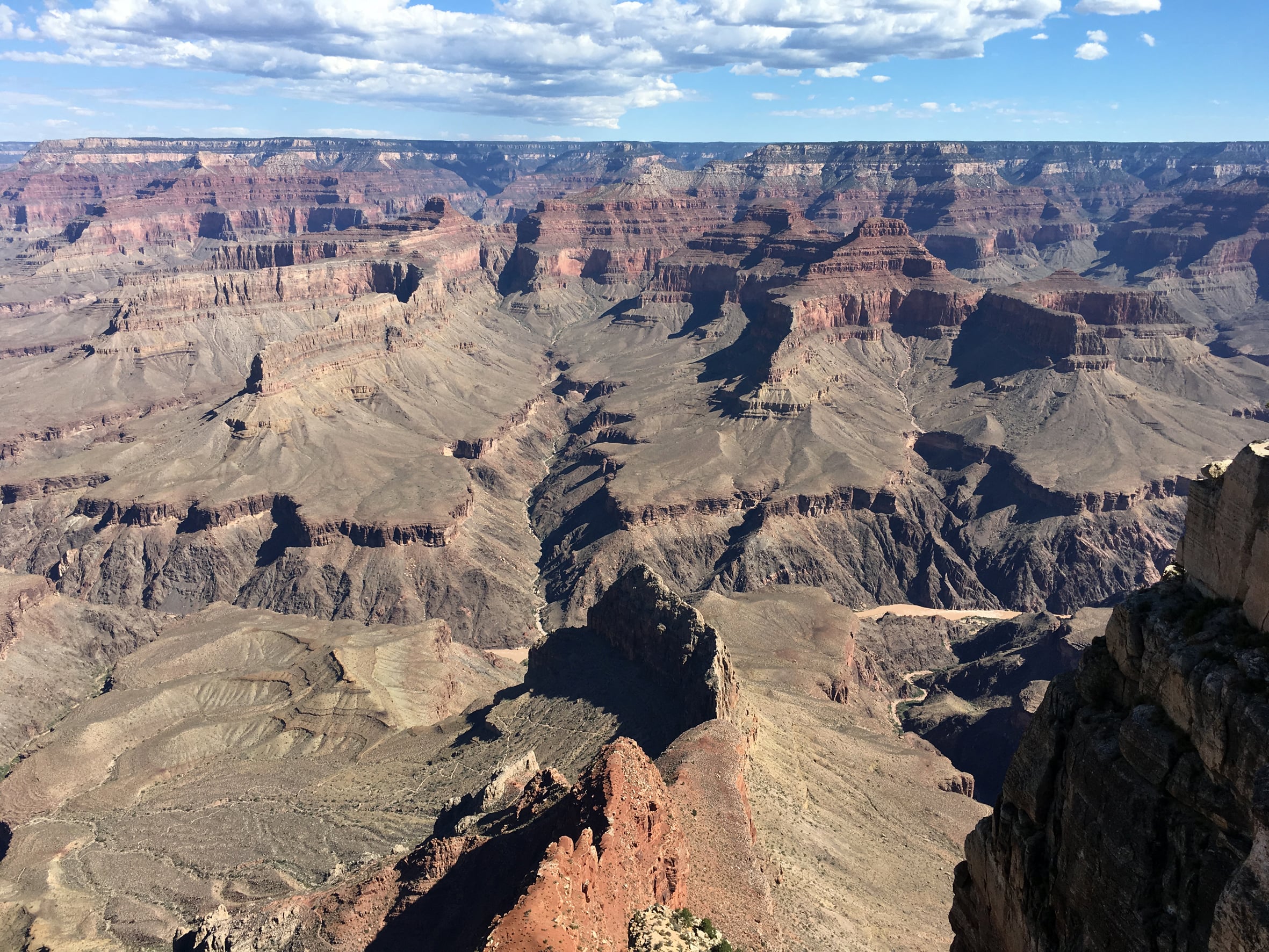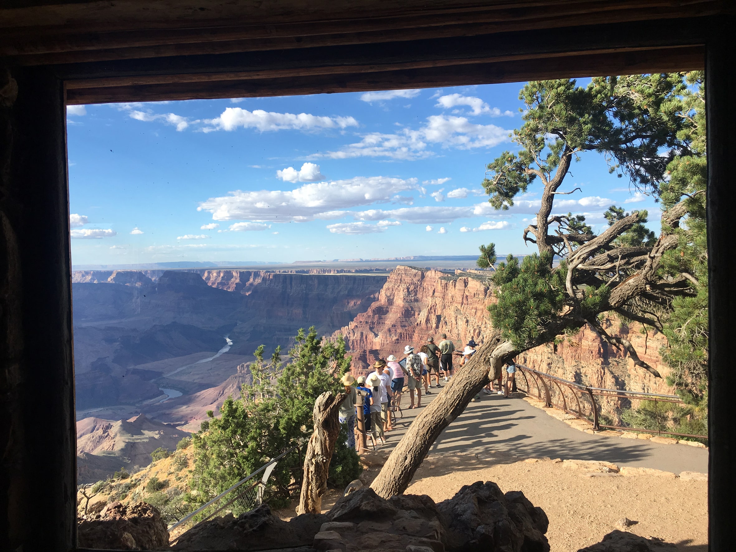 Cominciamo subito a chiarire che, benchè il Grand Canyon, inteso come “spaccatura” (termine riduttivo, me ne rendo conto), sia lungo 450km, la parte visitabile, a meno di non scendere fino al Colorado (cosa che fa forse l’1% dei visitatori perché ci vogliono una certa preparazione fisica, tempo, permessi), è lunga pochi chilometri in tutto. La maggior parte del Grand Canyon è area selvaggia, senza strutture, sentieri segnati, niente che sia visitabile da un “normale” turista che sta facendo il tour dei parchi (consiglio di visione: c’è chi ha provato a percorrerlo tutto nella sua lunghezza e ne ha fatto un documentario bellissimo che trovate qui).