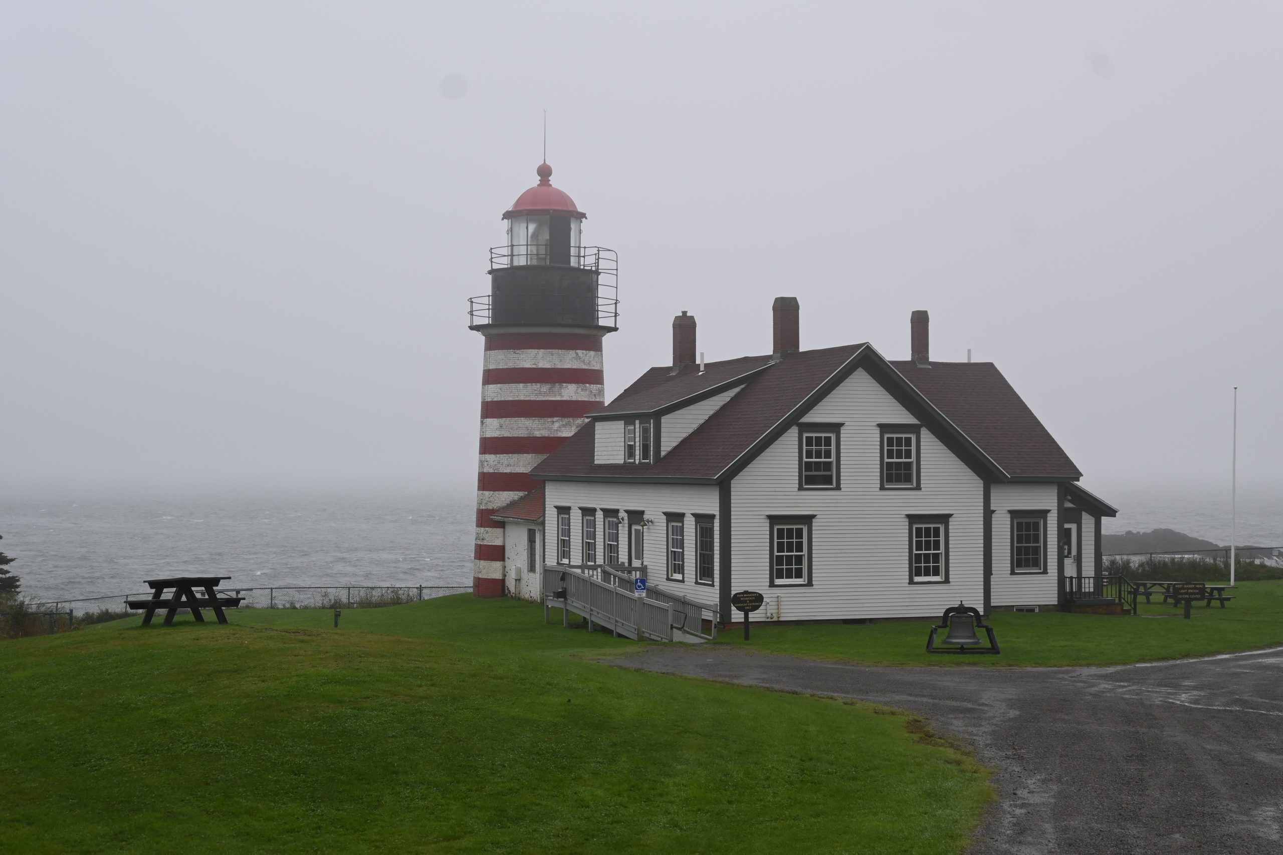 Stessa atmosfera che troviamo anche al faro: dovremmo vedere anche la costa del Canada, oltre il mare, ma vediamo solo nebbia e a malapena il faro a righe bianche e rosse (ancora chiuso, ovviamente), ma è valsa la pena comunque!