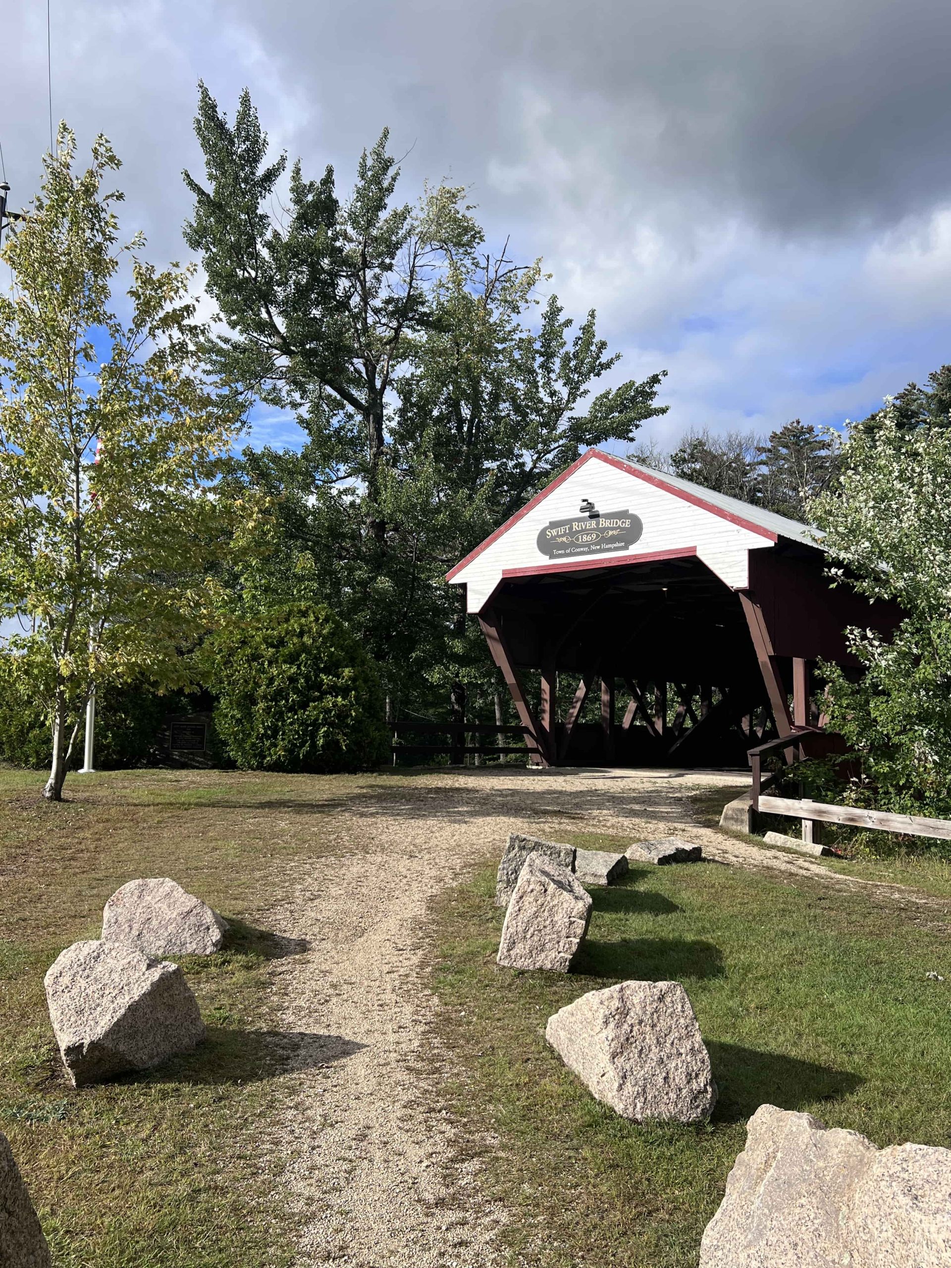 Ci rimettiamo in marcia in senso opposto, direzione North Conway! 5 ore e mezza di macchina, con una sosta pranzo da Denny’s ad Augusta, arriviamo a Conway alle 16, e dopo la ricerca dei fari, comincia la ricerca di ponti coperti! Ne vediamo subito due a Conway, molto vicini tra loro, il Saco River Covered Bridge e lo Swift River Covered Bridge, e poi decidiamo, visto che le cose da fare domani sono otto milioni, di togliercene subito una, la Kancamagus Highway, la scenic byway che dà il suo meglio di sè in ottobre con il foliage (ma un po’ di giallo e rosso già c’è). La strada è una statale lunga 55km senza servizi (occhio alla benzina, quindi) le cui soste panoramiche/parcheggi sono a pagamento: si paga una fee unica di 5$ nelle self station (noi non paghiamo nulla perché la strada è compresa nel pass annuale dei parchi nazionali) e ci si può fermare nelle varie aree di sosta per quel giorno.