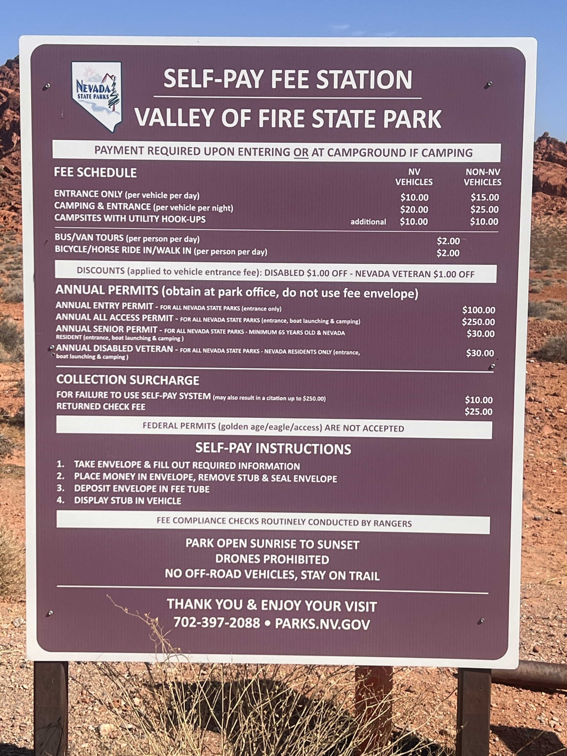 La Valley of Fire, come dice il suo nome, è BOLLENTE: talmente bollente ed infuocata, che da maggio ad ottobre i suoi trail più famosi – come quello per la Fire Wave – sono chiusi, per evitare che gli escursionisti muoiano letteralmente di caldo come è già successo in passato. La parte accessibile del parco, però, come la meravigliosa scenic drive – la White Dome Road – e i piccoli trail aperti, valgono comunque l’escursione da Las Vegas anche in estate, con un consiglio che è quasi un obbligo: visitate la valle solo nelle prime ore del mattino e dal tardo pomeriggio, perchè si raggiungono facilmente i 50 gradi e non c’è ombra da nessuna parte.