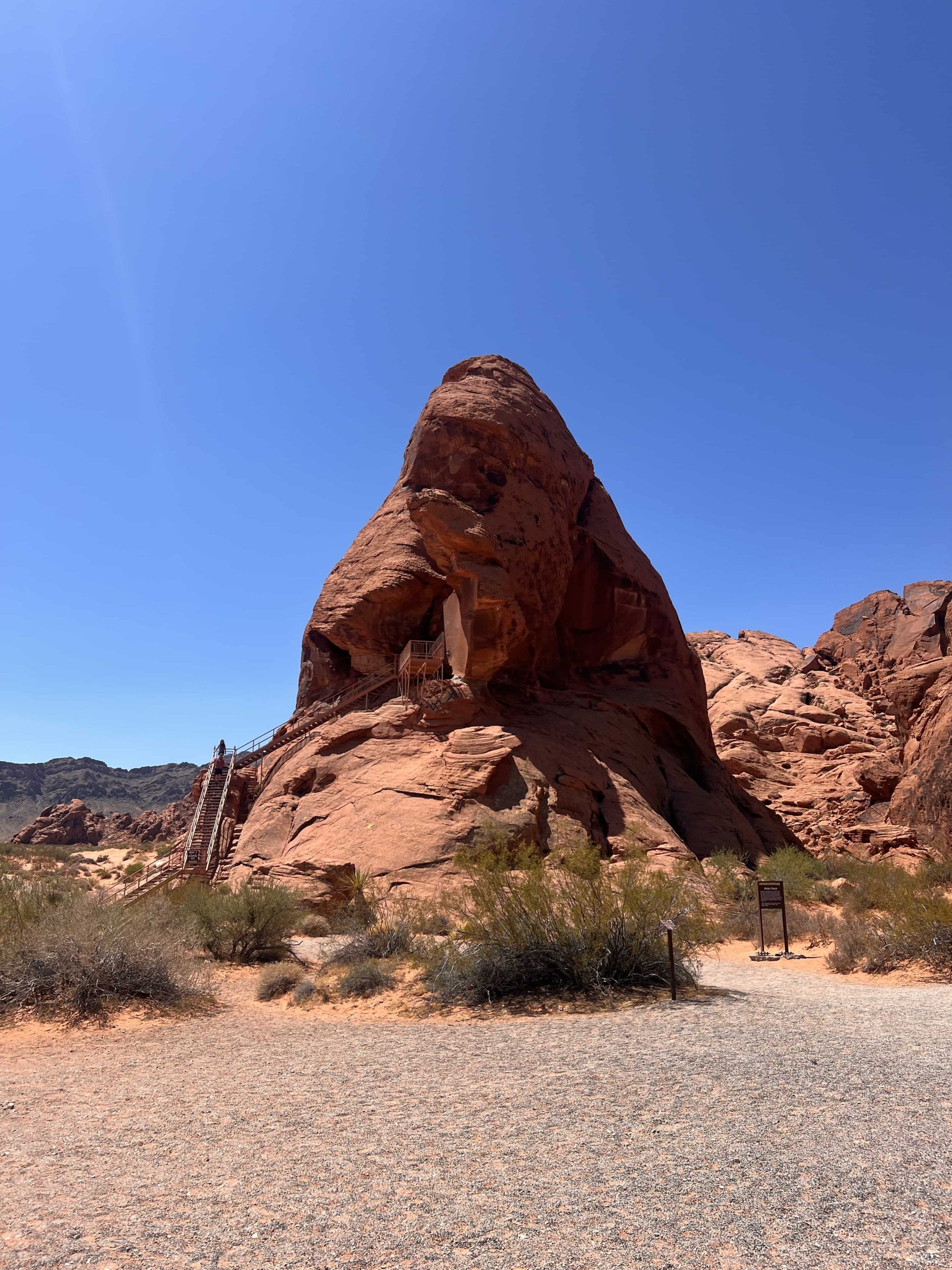 Completiamo poi la scenic drive e usciamo dall’ingresso ovest del parco, dopo aver visto dei meravigliosi petroglifi risalenti a 4000 anni fa che si ammirano salendo delle scale di metallo. Nella Valley of Fire vediamo anche la nostra prima wildlife (dai che la sfiga di non vedere mai fauna locale si è esaurita con le balene di Cape Cod!): due lizards e soprattutto una bighorn sheep che tranquilla tranquilla ci attraversa la strada per andare a brucare dall’altra parte.